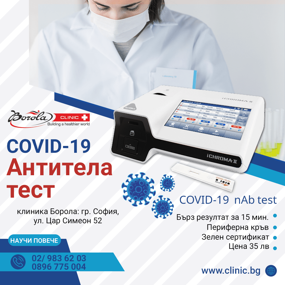Ново в клиника Борола – бърз тест за количествено определяне на антитела за Ковид-19 и издаване на зелен сертификат!